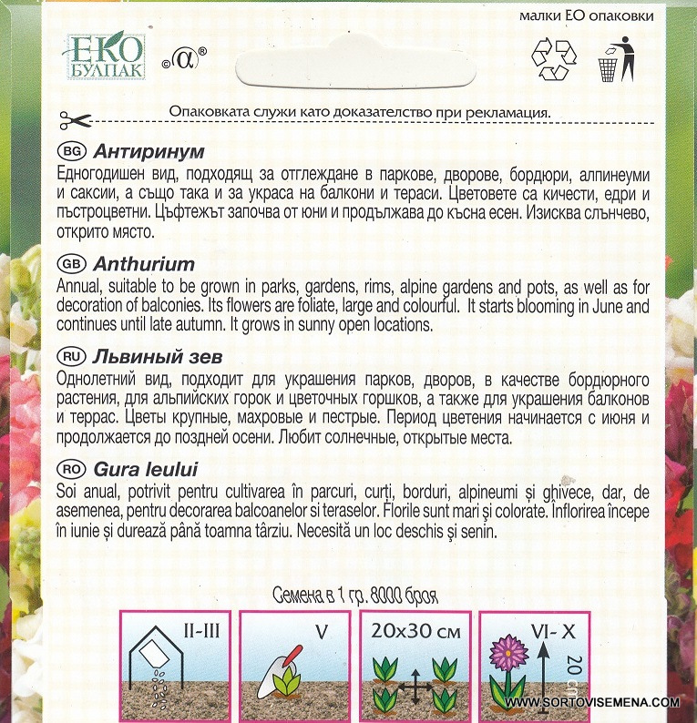 Представяме ви сортови семена за Антиринум (Antirrhinum majus), по-известен у нас като „Кученце“ – едно от най-обичаните градински цветя, което съчетава носталгичен чар с модерна визия. Този микс е внимателно подбран, за да ви осигури палитра от наситени цветове – от чисто бяло и слънчево жълто до наситено червено и нежно розово. Кученцето е изключително ценено заради продължителния си цъфтеж и способността му да придава вертикален обем на цветните лехи.