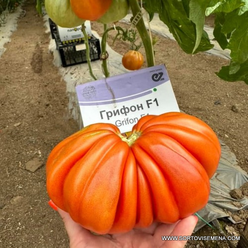 Grifon F1 (Грифон F1) е нов иновативен индетерминантен (високорастящ) F1 хибрид от типа червен домат на Enza Zaden. Той се отличава с отличителен вкус на „домашен домат“ и силно оребрена форма, което го прави идеален за гурме пазара и потребители, търсещи атрактивен вид.