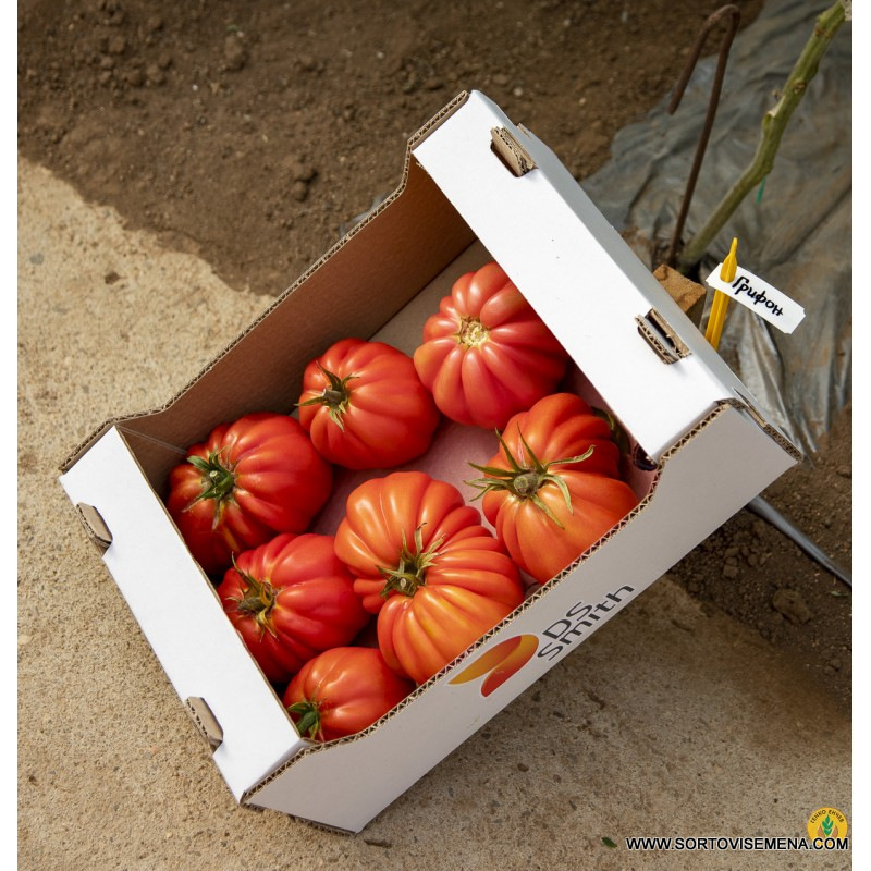 Размер/Тегло: Силно едроплоден хибрид с тегло над 350 г. Теглото на доматите може да достигне 600 г.