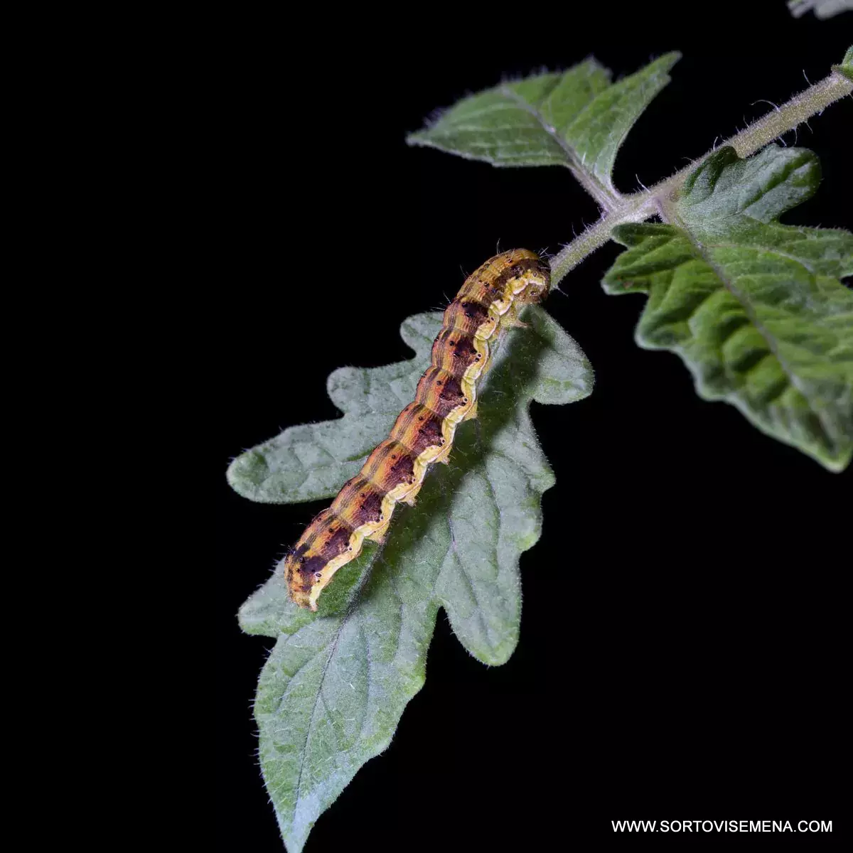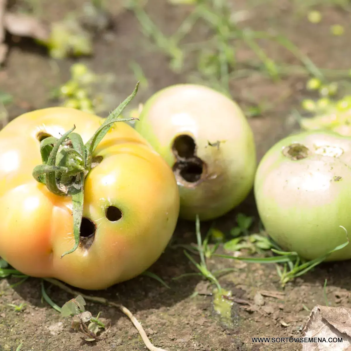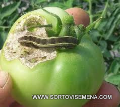 Симптом: Малки дупки в плодовете на доматите, чушките или царевицата; наличие на гъсеници вътре в самия плод; изядени върхове на растенията.
