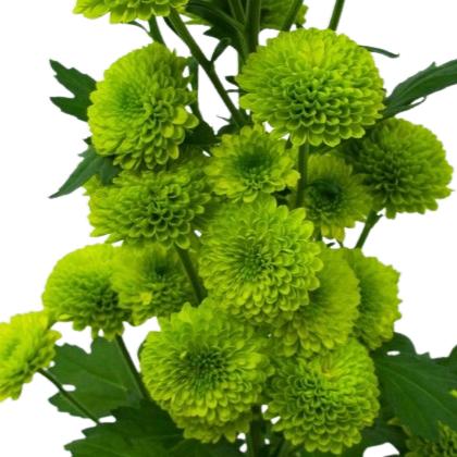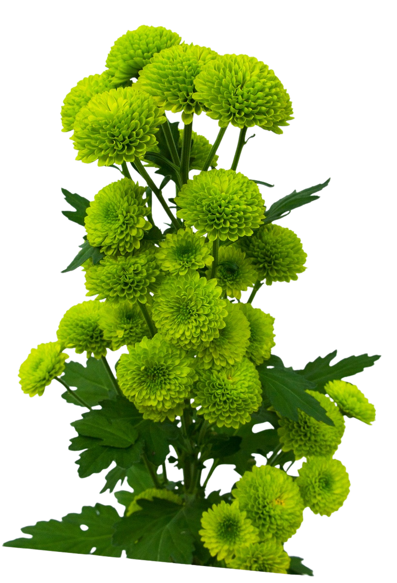 Потопете се в света на изключителната и освежаваща красота с Хризантема Хю (Chrysanthemum Hue). Тази уникална хризантема ще озари всяко кътче с интригуващите си зелени цветове с форма на помпон, създавайки завладяващ и артистичен акцент, който привлича погледа и изпълва пространството със стил и свежест.
