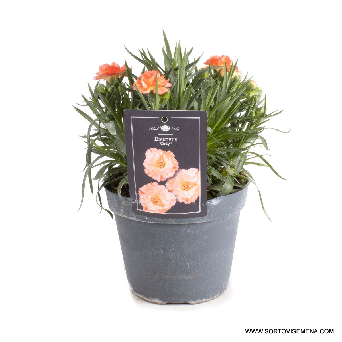 Dianthus Cody е енергичен и привлекателен сорт от серията Sunflor®. Той се отличава с ярък, наситен оранжев цвят, който внася слънчево настроение и динамика във всяка композиция. Cody е известен със своя много компактен хабитус и дълъг период на цъфтеж, което го прави идеален за малки саксии и преден план в градински лехи.