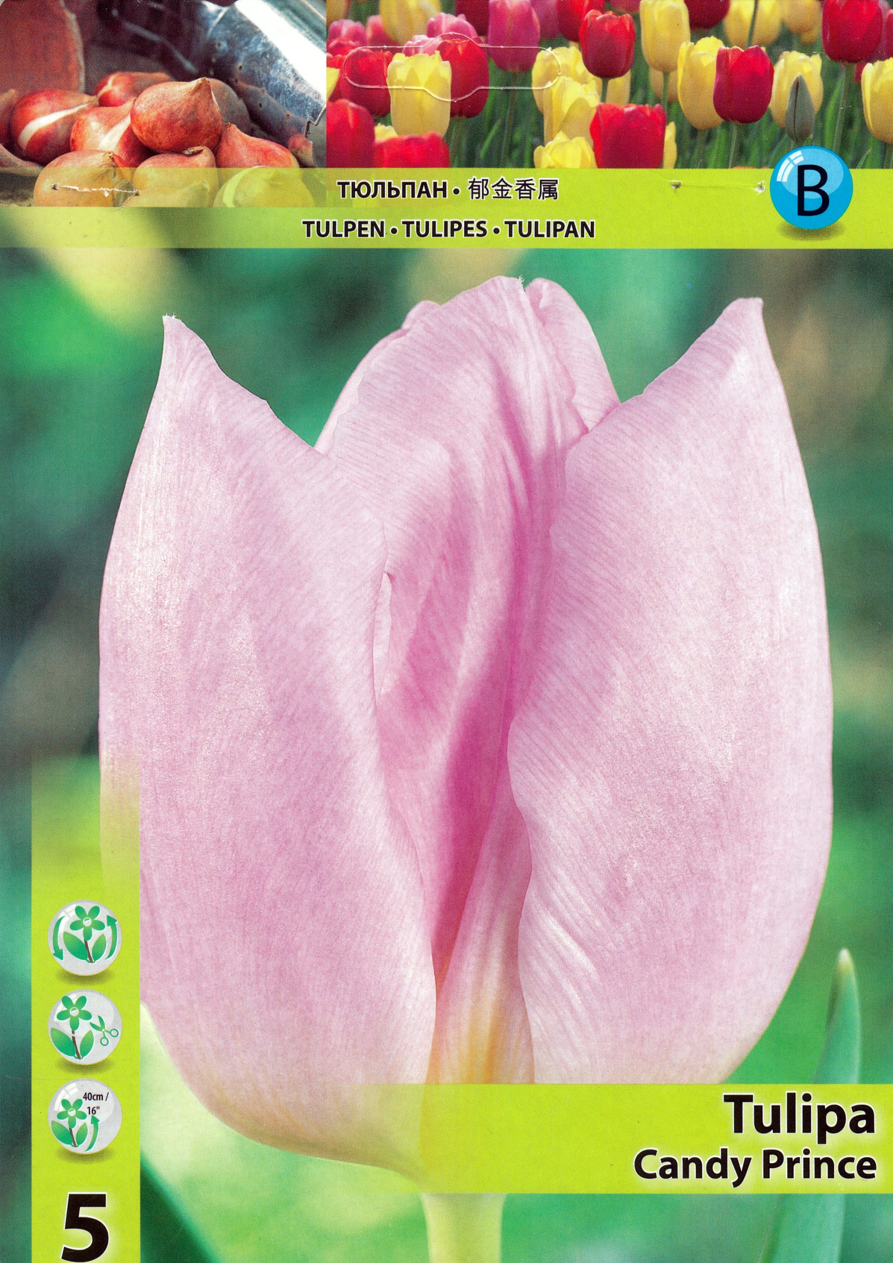 Представяме ви луковици на лале Candy Prince. Този изящен сорт е част от групата на Единичните ранни лалета, които се отличават със своя изискан и ранен цъфтеж. Candy Prince (превод на името: „Бонбонен принц„, на кирилица се изписва като „Канди Принс“) е истинско удоволствие за сетивата. Този сорт се отличава с големи, елегантни цветове в мек, розов до лилав цвят, който напомня на сладък памук. Неговият деликатен цвят и изящна форма го правят перфектен за създаване на нежни и романтични пролетни композиции.
