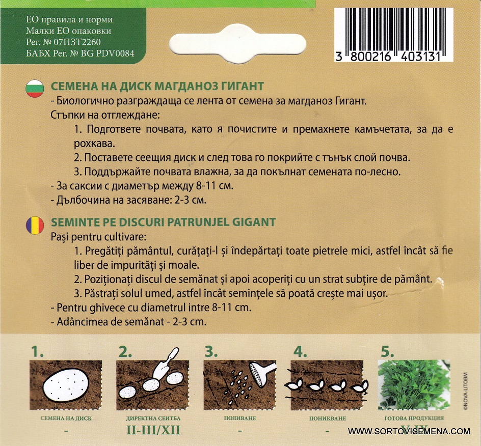 Технологията на семенните дискове е разработена за максимално улеснение на градинаря, особено при фини семена като тези на магданоза.