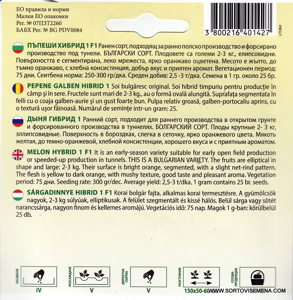 Сортови семена за Пъпеши Хибрид 1 F1 – Ранният български стандарт