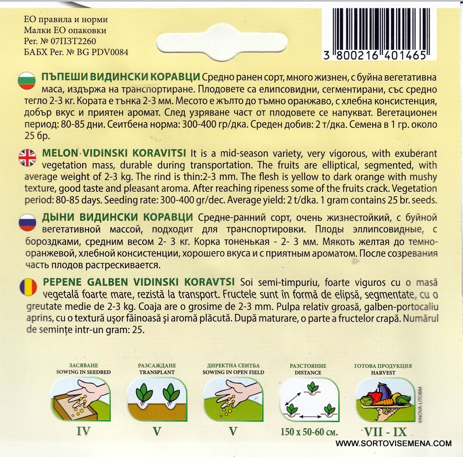 Поръчайте семена за Пъпеши Видински коравци от „Сортови семена и растителна защита” ЕООД чрез нашия онлайн магазин sortovisemena.com и си осигурете гарантирано качество за вашата градина!