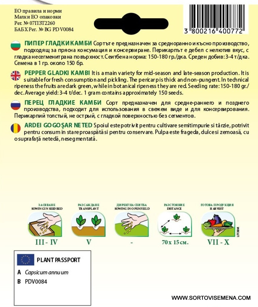 | 🛠️ Вид продукт | Семена за Пипер (Гладки камби) |