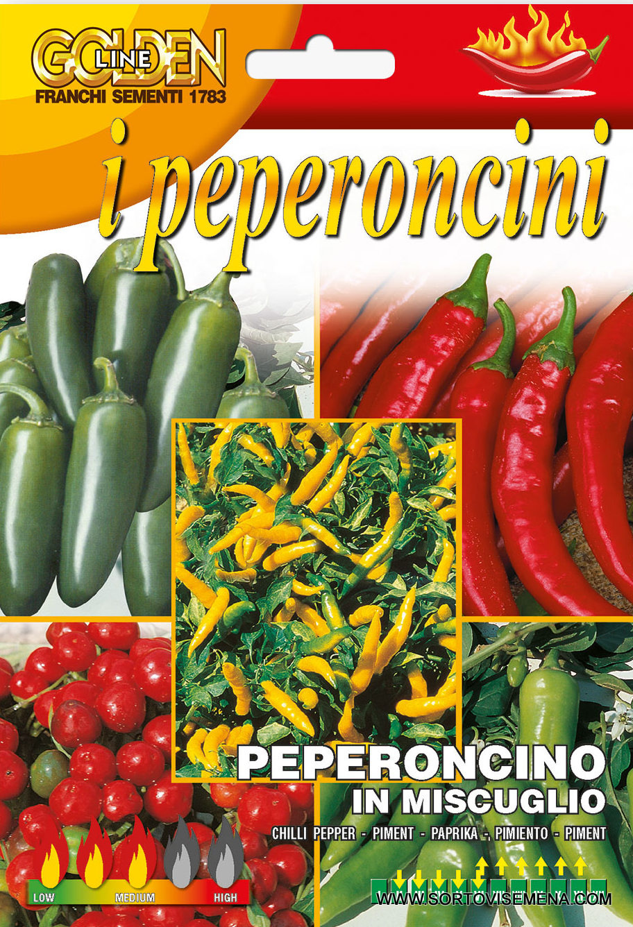 Представяме ви семена за Пипер лют микс от 5 сорта (Peperoncini In Misculgio) – селекция от пет различни, средноранни сорта лют пипер, която ще осигури богатство от форми, цветове и пикантност за вашата кухня. Този микс е идеален за любители на лютото, които искат да имат разнообразна и лесна за отглеждане реколта, дори и в саксия.