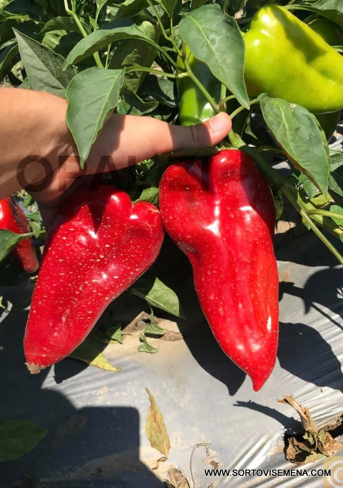Морфология на плода: Едри, добре оформени плодове с дължина 18–20 см. Сортът формира двустенни и тристенни чушки, което ги прави изключително удобни за кулинарна обработка.