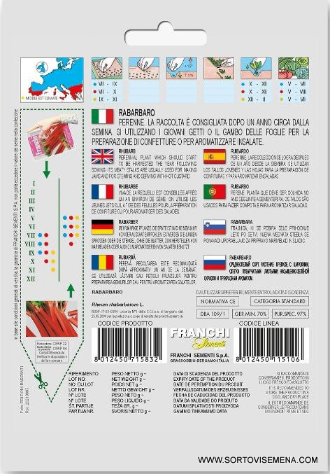 Представяме ви сортови семена за Ревен (Rheum rhabarbarum) – изключително полезен и непретенциозен многогодишен зеленчук, който често бива грешно оприличаван на плод заради кулинарната му употреба. Той образува дебели, ръбести и сочни червеникави стъбла, които са истинско съкровище за пролетното меню. Веднъж засят, ревенът може да расте на едно и също място повече от 10 години, като става все по-мощен и продуктивен с всяка изминала година.