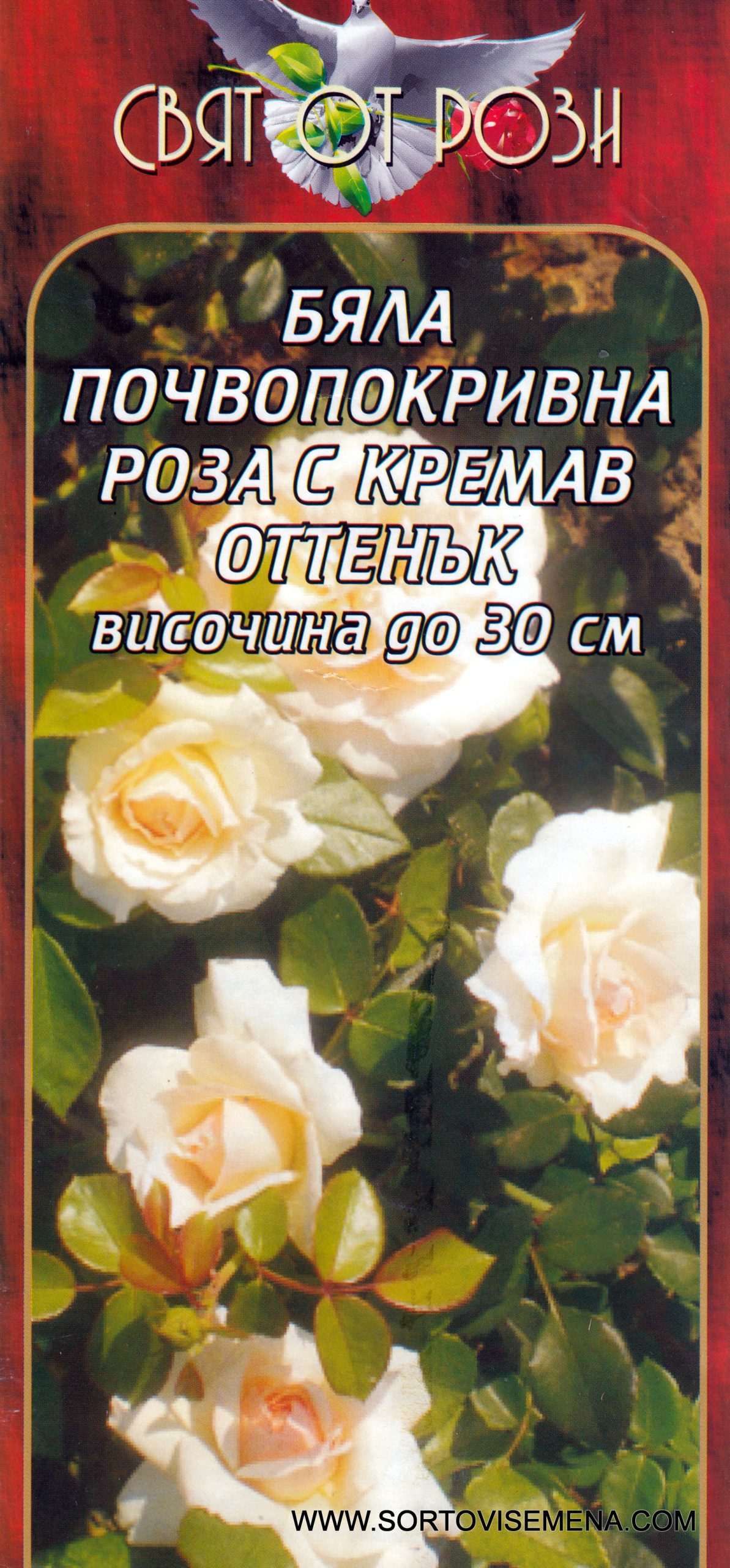 Роза бяла почвопокривна с кремав оттенък № 039 корен – Височина до 30 см – Снежнобял килим с нежен кремав център!