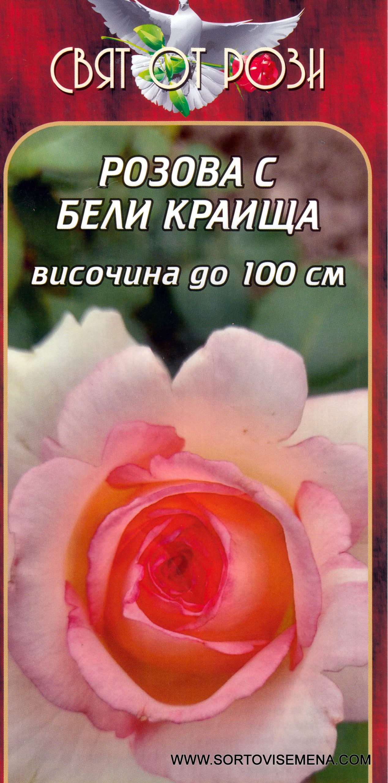 Представяме Ви Розовата роза с бели краища № 133 – изискан двуцветен сорт с височина до 100 см. Цветовете са в мек, нежен розов цвят, който плавно прелива към деликатен бял или по-светъл кант по краищата на венчелистчетата. Този ефект създава визуална дълбочина и романтично, елегантно излъчване във всяка градина. Розата е идеална за създаване на нежни цветни лехи, акцентни групи или като рязан цвят във ваза.