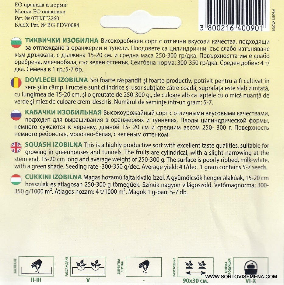 Знаете ли, че: В България сортът Изобилна е еталон за категорията на „белите“ тиквички. За разлика от тъмнозелените сортове, млечнобялата повърхност със зелен оттенък на Изобилна подсказва за една по-фина и по-сладка месеста част. Тъй като сортът е селектиран за нашите условия, той притежава по-висока естествена устойчивост на температурни колебания в ранна пролет, което го прави идеален за тунелно отглеждане.